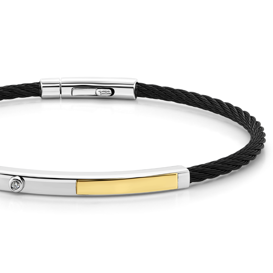 Brățară din inox cu element din aur de 18K și Diamant natural incolor de 0.015ct.