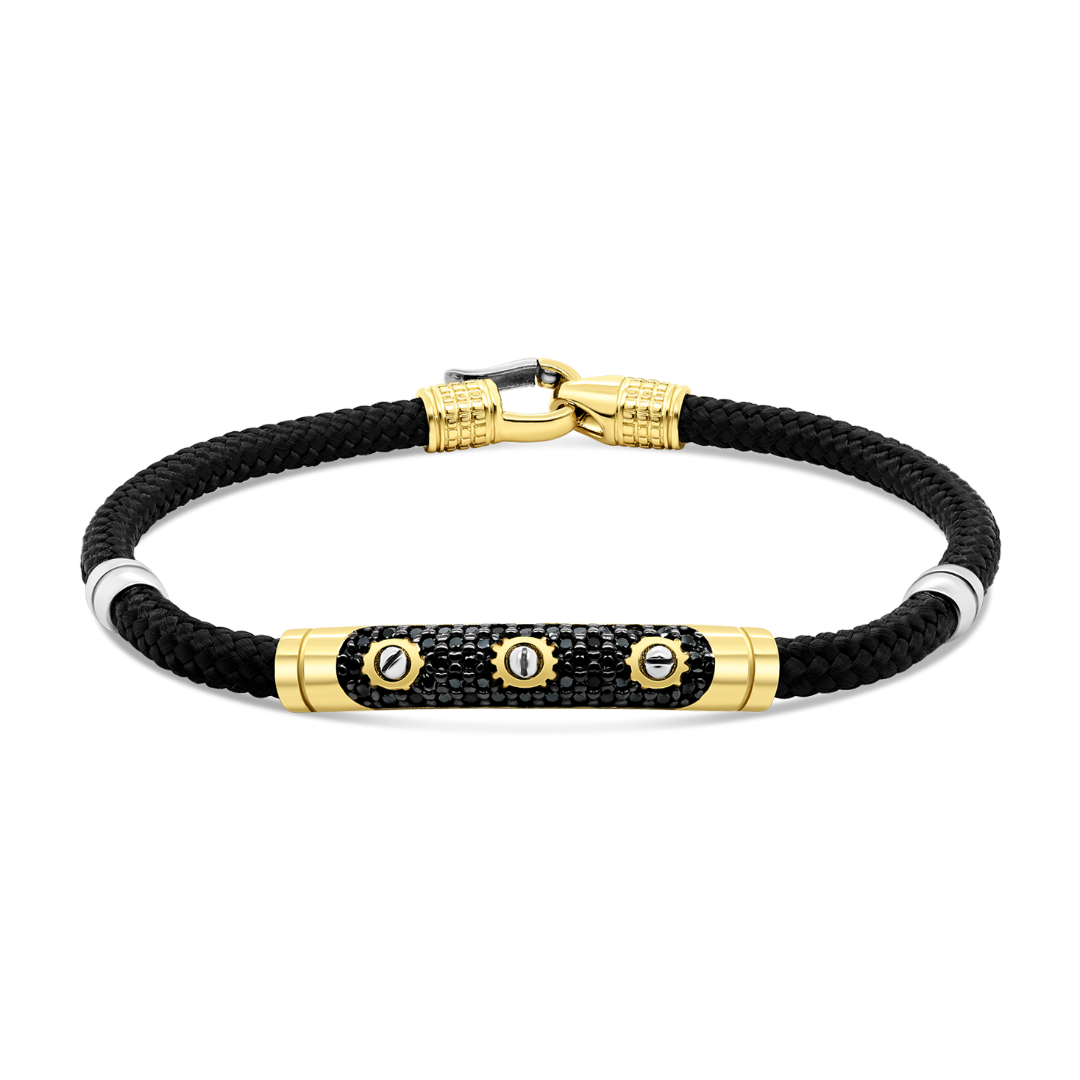 Brățară cu șnur împletit, pietre cubic zirconia și elemente din aur alb și galben de 14K.