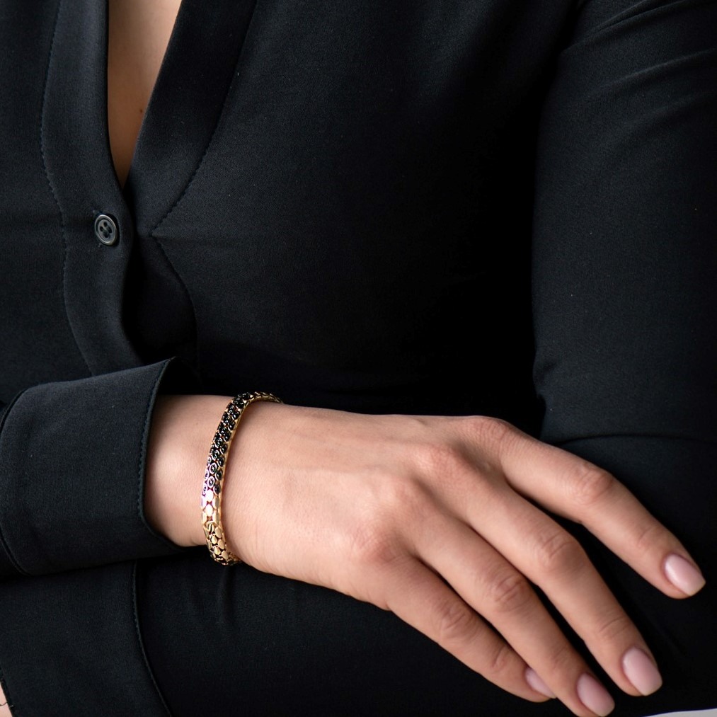 Brățară din aur galben de 14K cu rodiu negru și pietre Cubic Zirconia negre.