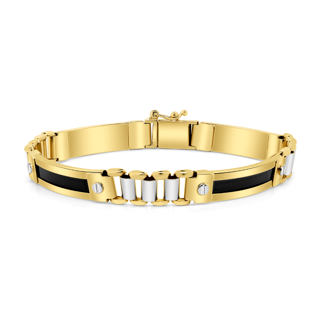Brățară din aur galben de 14K, cu Email negru și elemente din aur alb.