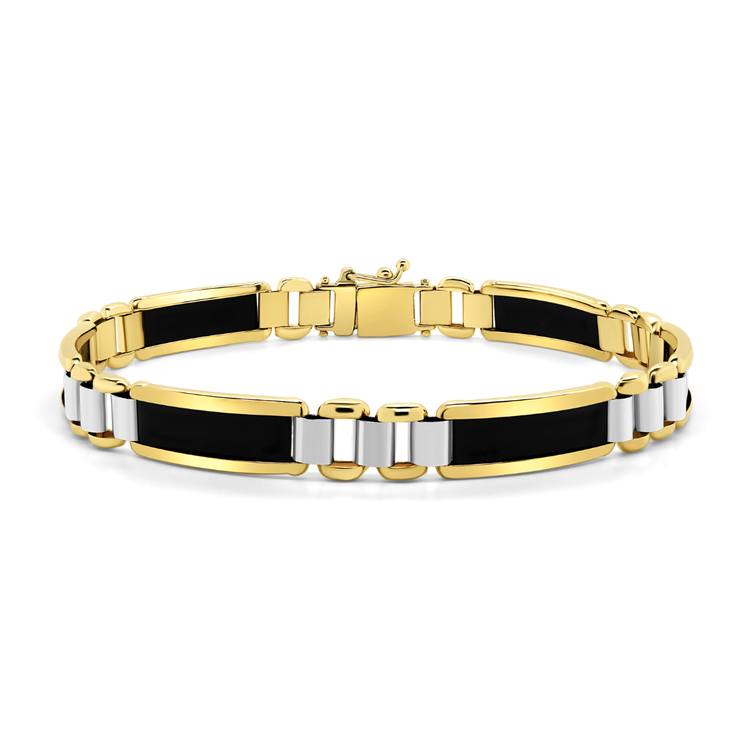 Brățară pentru EL din aur galben de 14K, cu elemente din aur alb și Email negru.