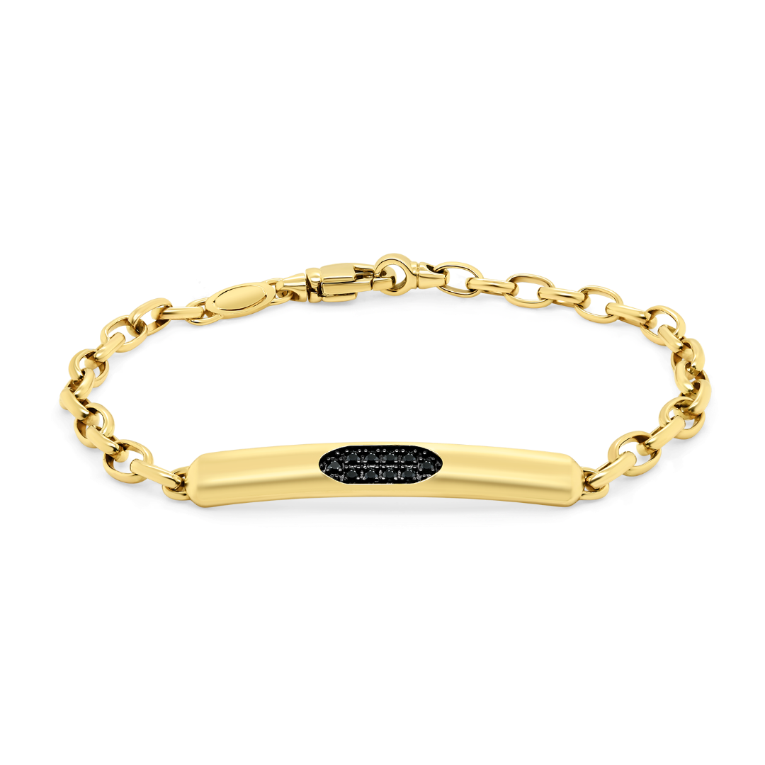 Brățară din aur galben de 14K cu pietre cubic zirconia negre.