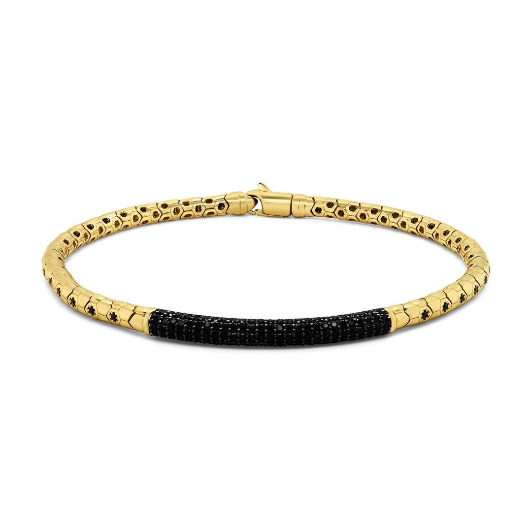 Brățară din aur galben de 14K, cu elemente segmentate și pietre Cubic Zirconia negre.