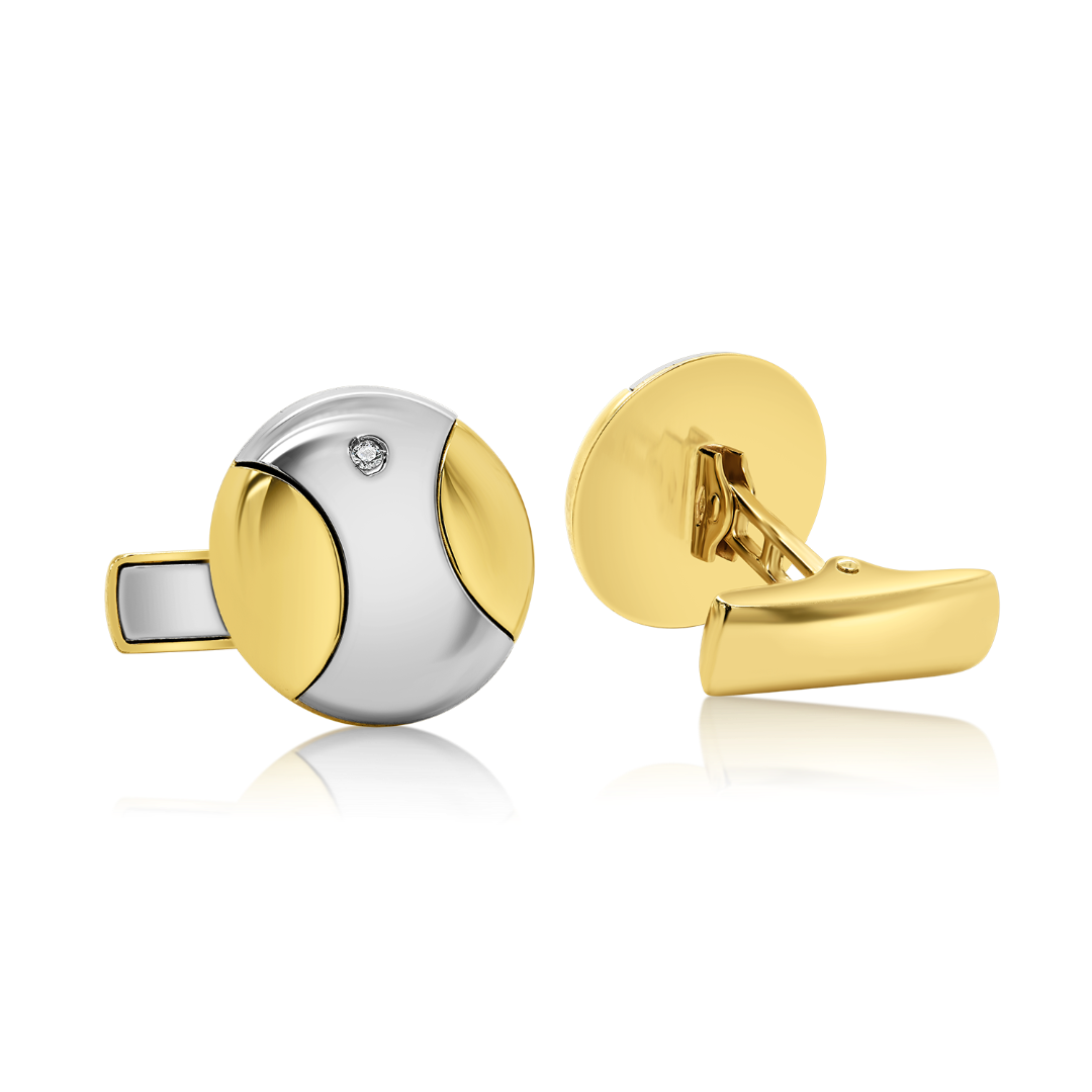 Butoni din aur galben de 14K cu elemente din aur alb