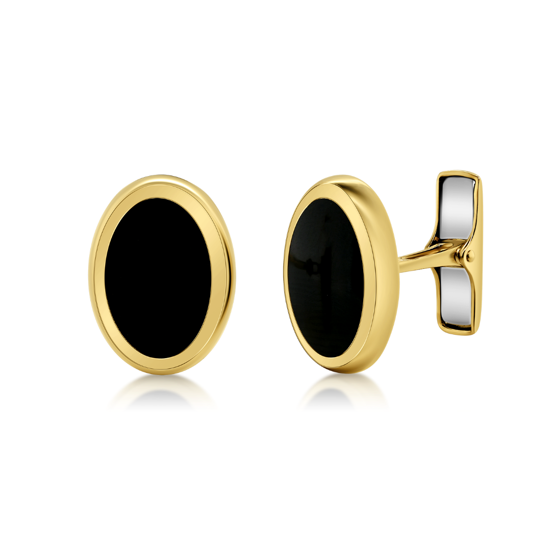 Butoni din aur galben de 14K cu Email negru