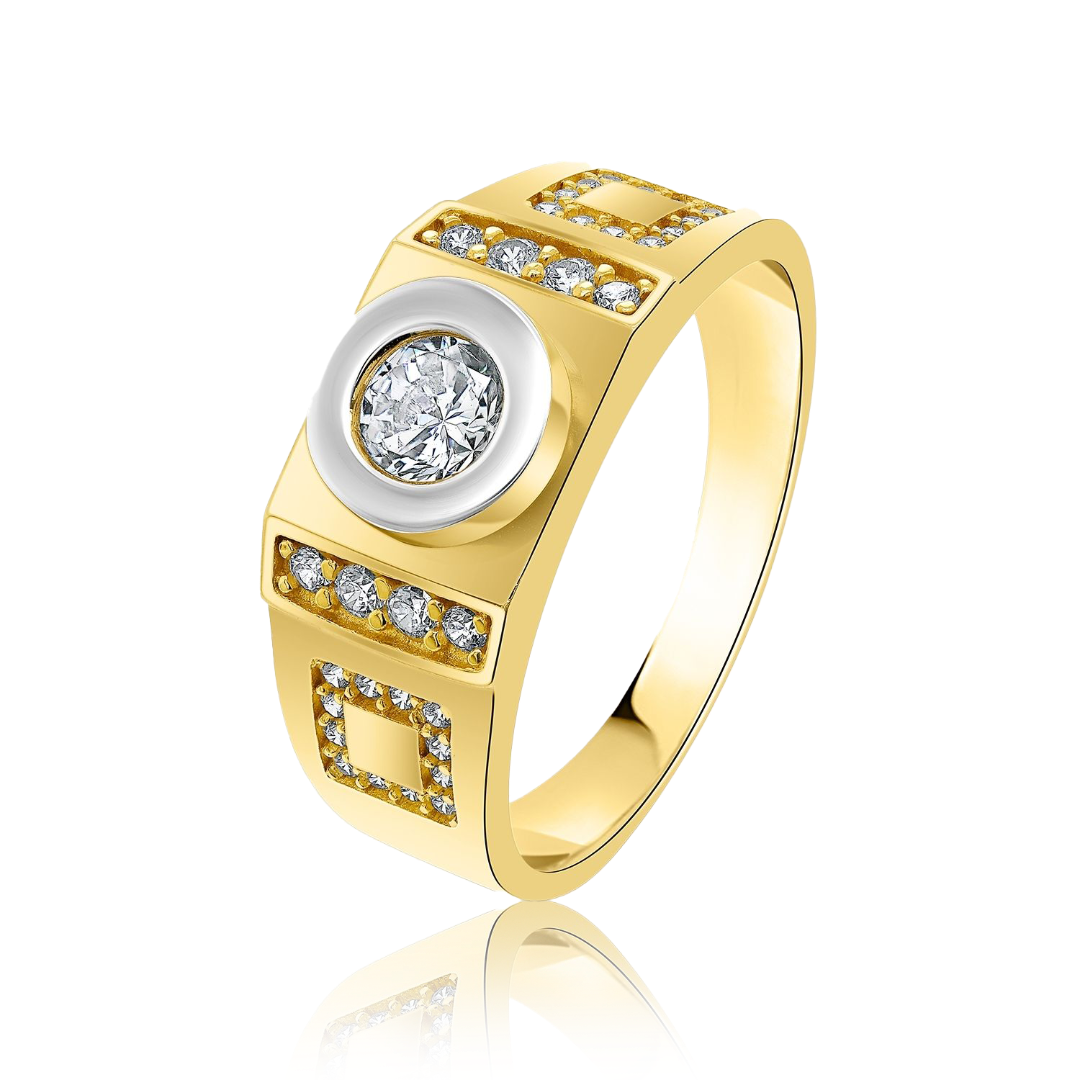 Inel pentru EL din aur galben de 14K cu pietre Cubic Zirconia albe.