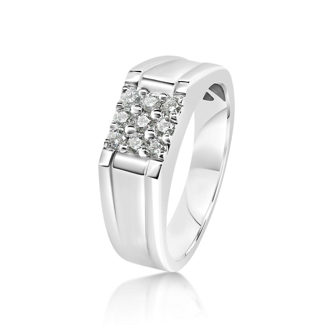 Inel pentru EL din aur alb de 18K cu 9 Diamante Round Brilliant, naturale.