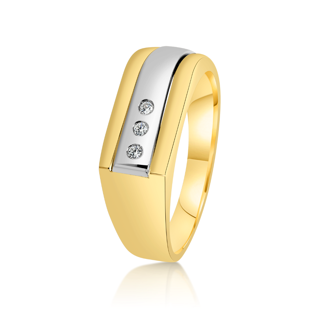 Inel pentru EL din aur galben de 14K, cu element din aur alb și pietre Cubic Zirconia.