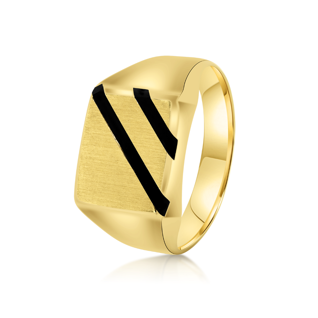 Inel pentru EL din aur galben de 14K cu elemente liniare din Email negru.