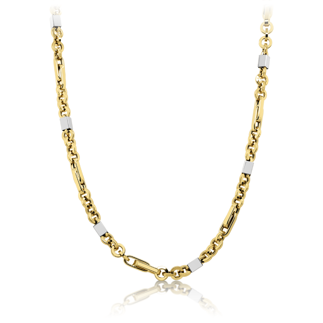 Lanț din aur galben de 14K cu elemente din aur alb.