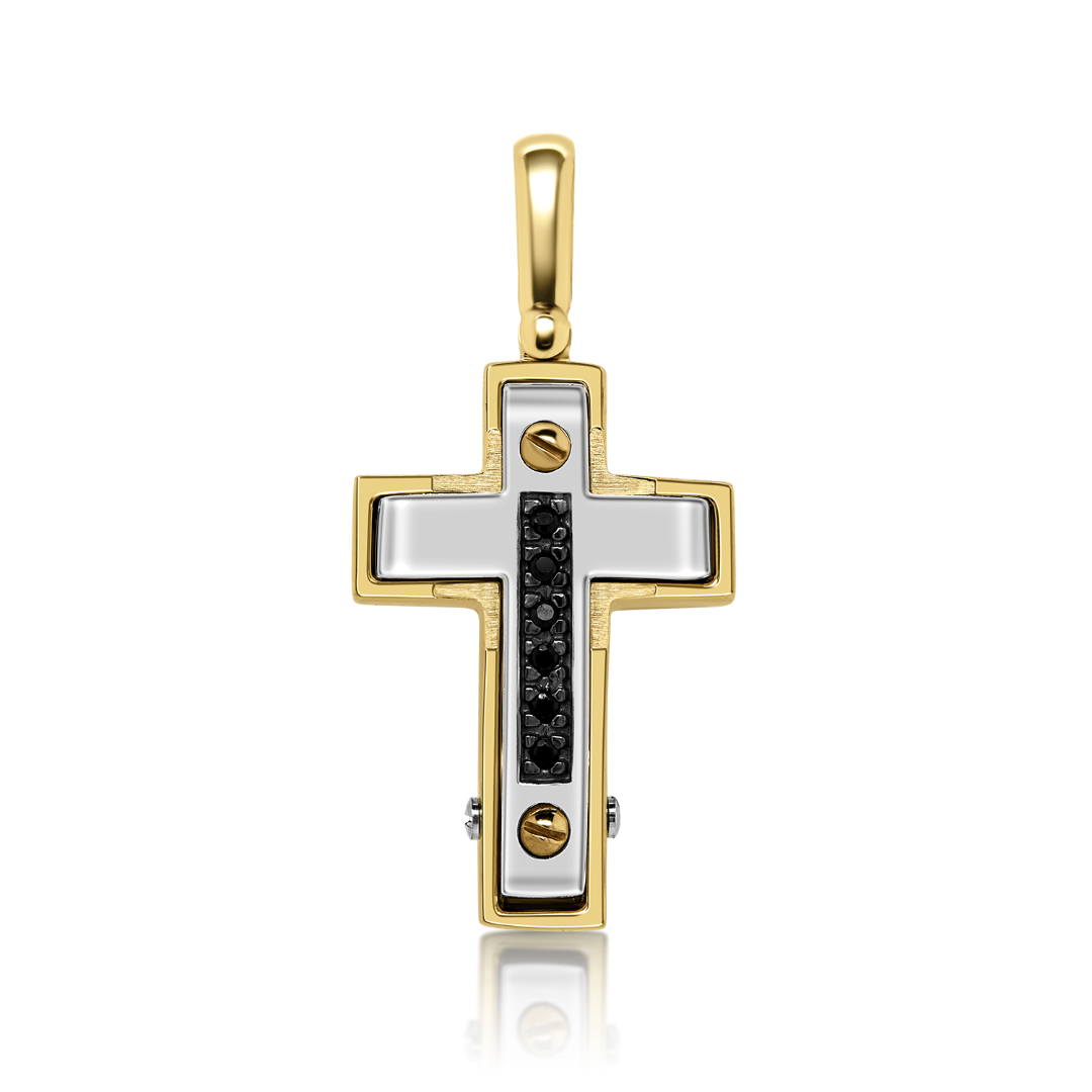 Pandantiv tip cruce pentru EL din aur galben și aur alb de 14K cu pietre cubic zirconia negre.