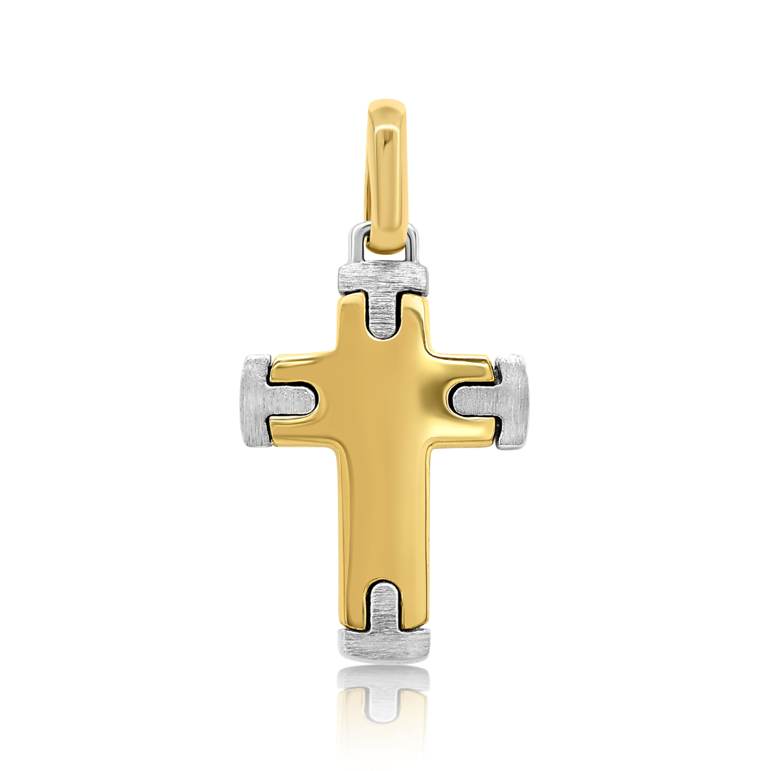 Pandantiv cruce din aur galben de 14K cu inserții din aur alb.