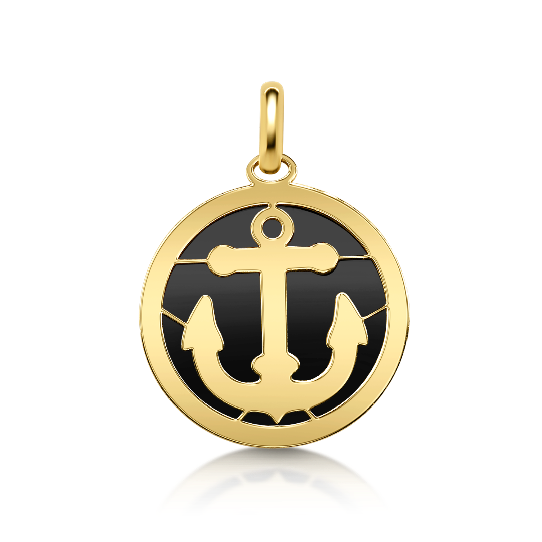 Pandantiv cu element în formă de ancoră din aur galben de 14K și Email negru.