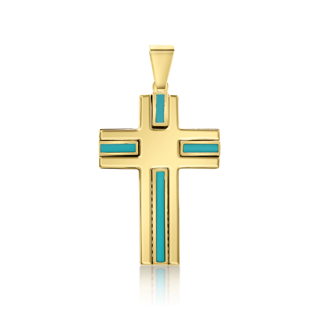 Pandantiv cruce din aur galben de 14K cu Email colorat.