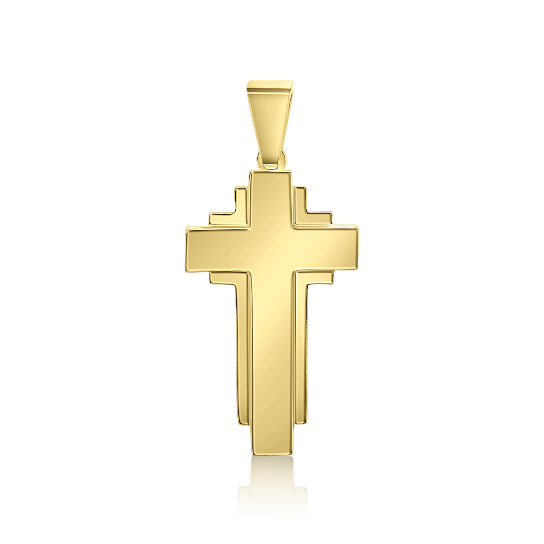 Pandantiv cruce cu elemente suprapuse din aur galben de 14K.
