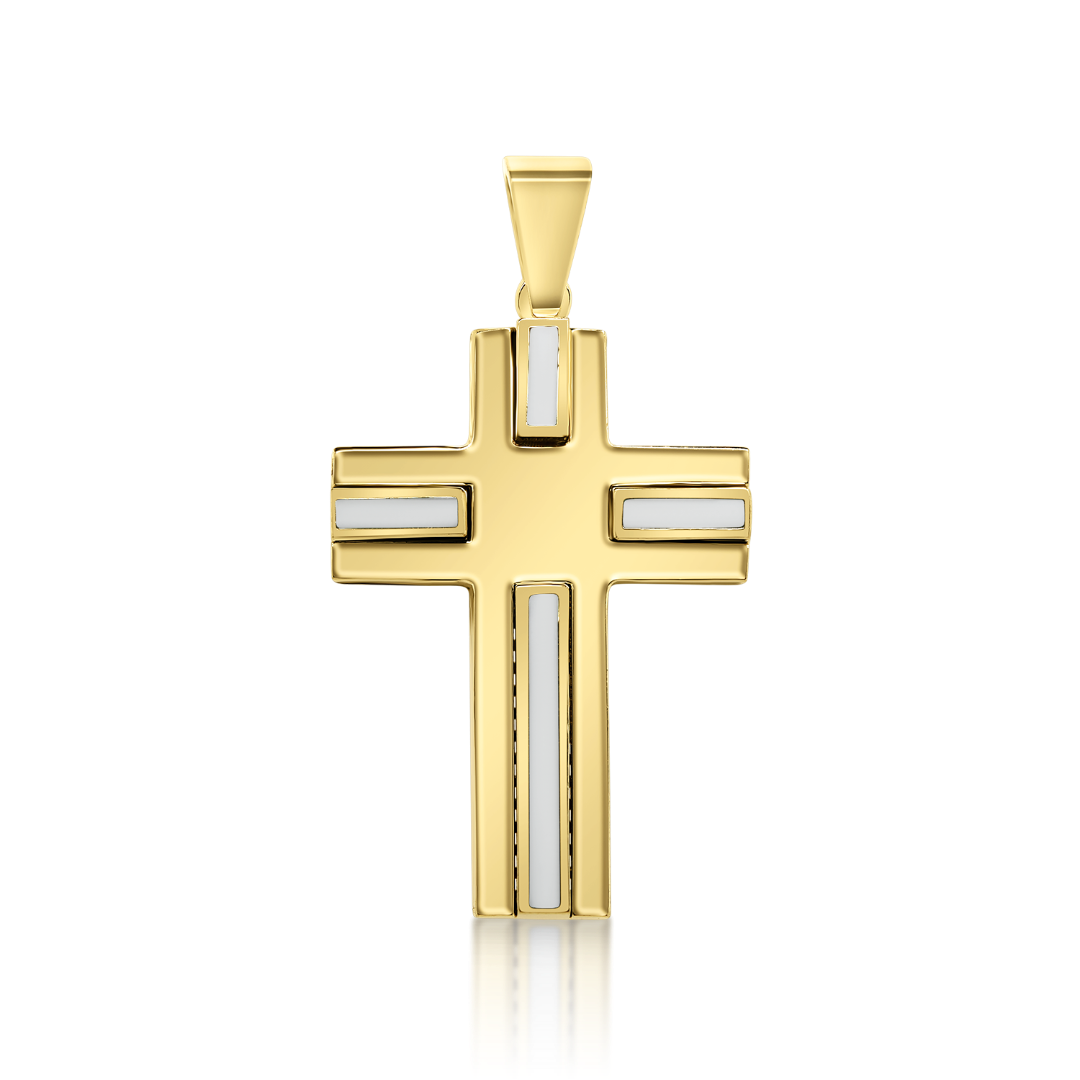 Pandantiv tip cruce din aur galben de 14K cu Email.