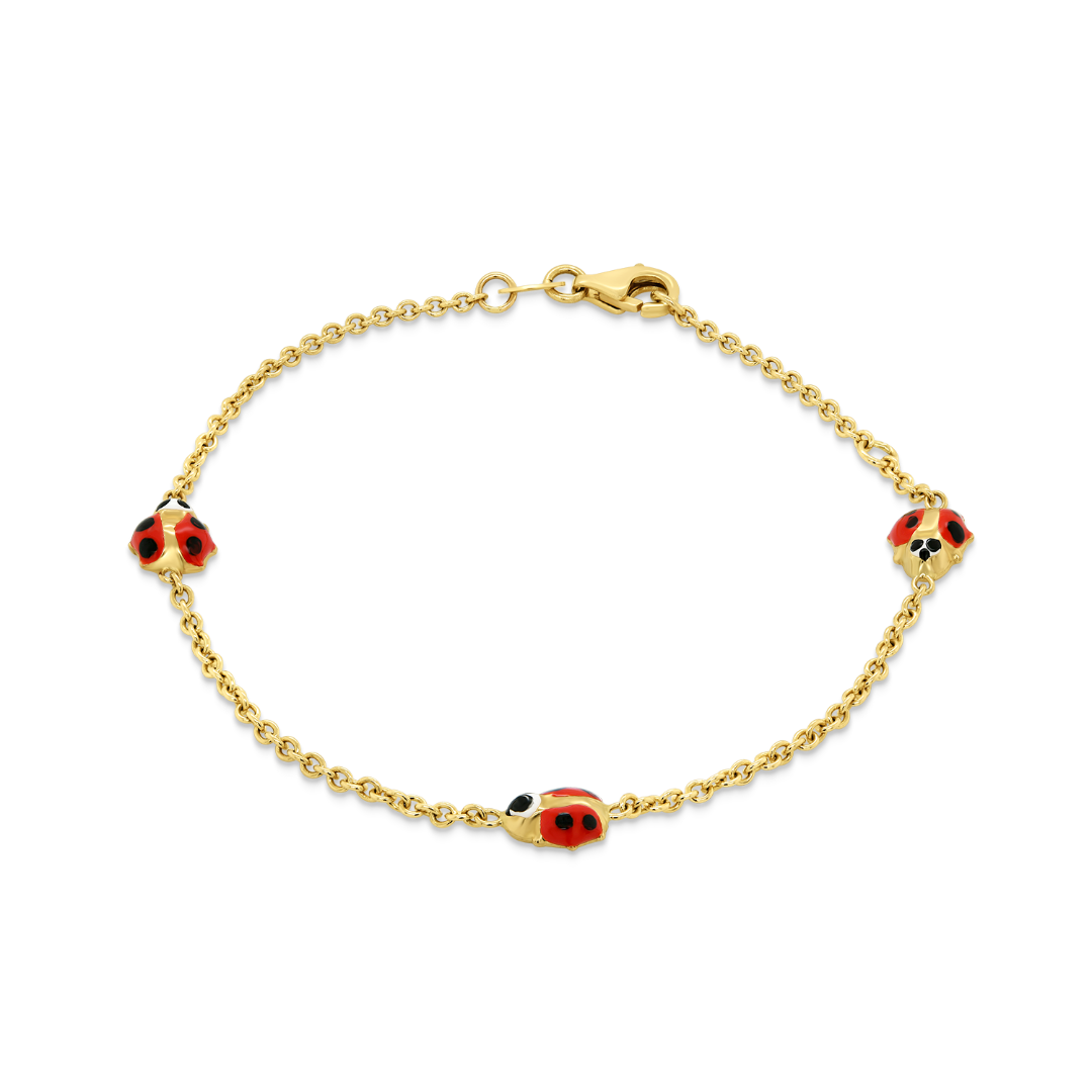 Brățară din aur galben 14K cu elemente tip buburuze cu Email.