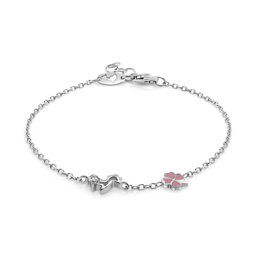 Brățară din aur alb de 14K, cu Email colorat și pandantiv unicorn cu piatră cubic zirconia.
