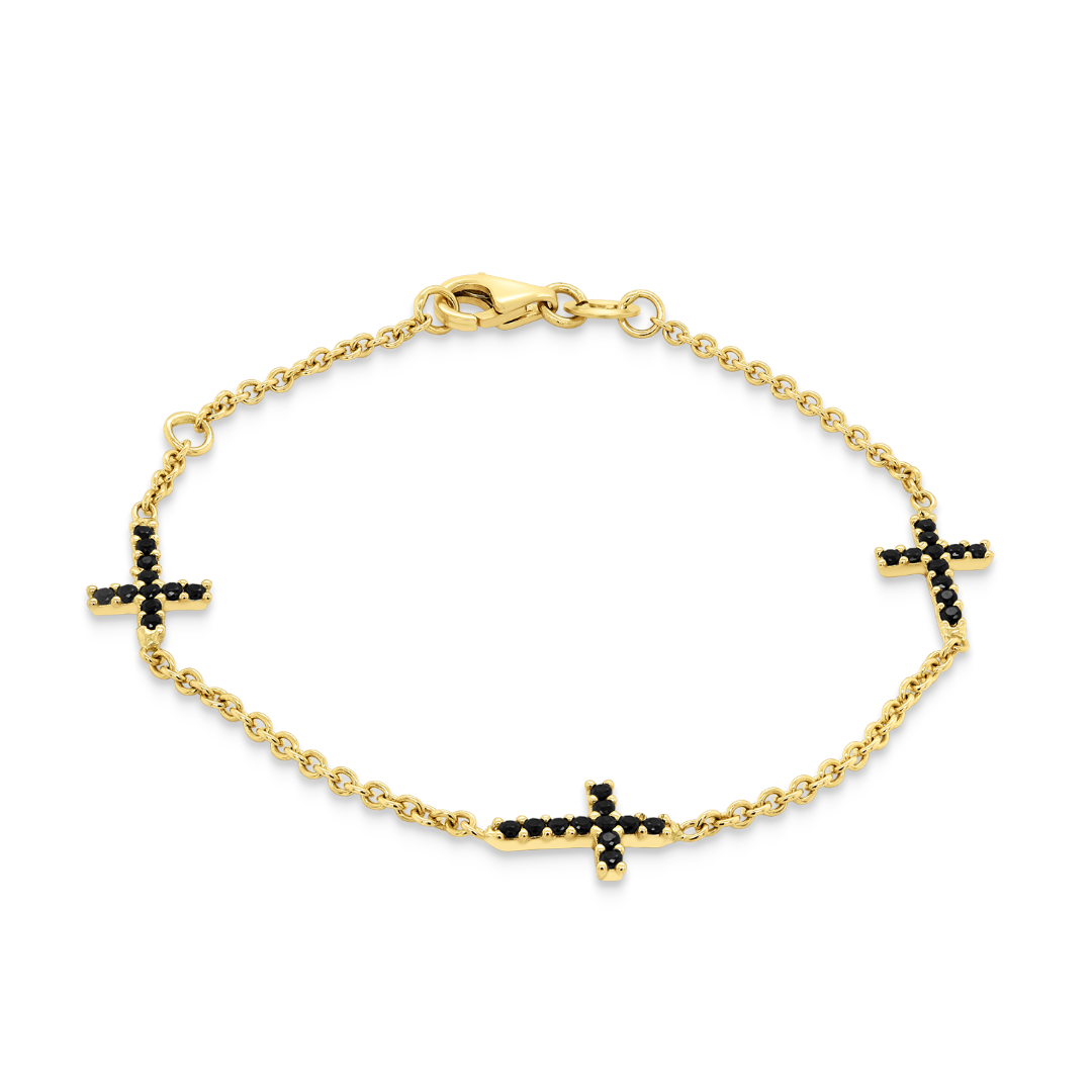 Brățară din aur galben de 14K, pentru copii, cu elemente tip cruciulițe cu pietre Cubic Zirconia negre.