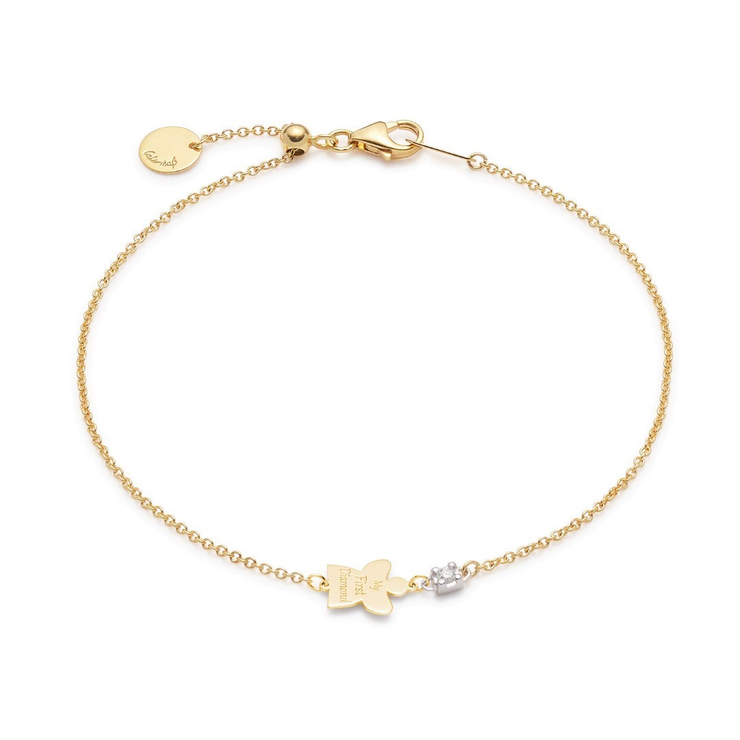 Brățară din aur galben de 18K cu pandantiv îngeraș și Diamant natural