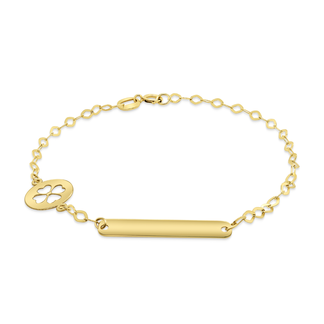 Brățară din aur galben de 14K cu pandantiv trifoi.