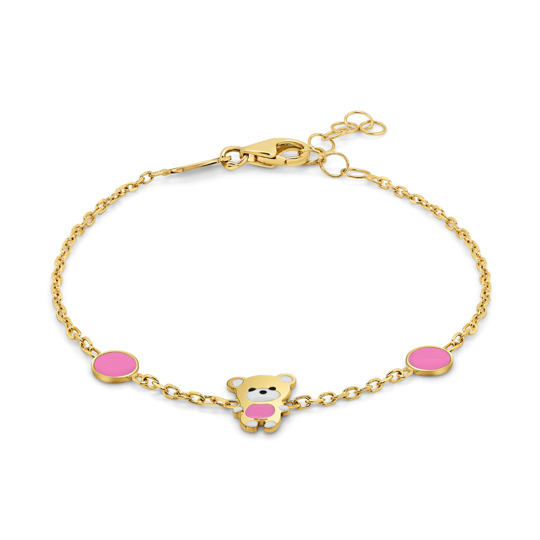 Brățară din aur galben de 14K, cu Email colorat și ursuleț.