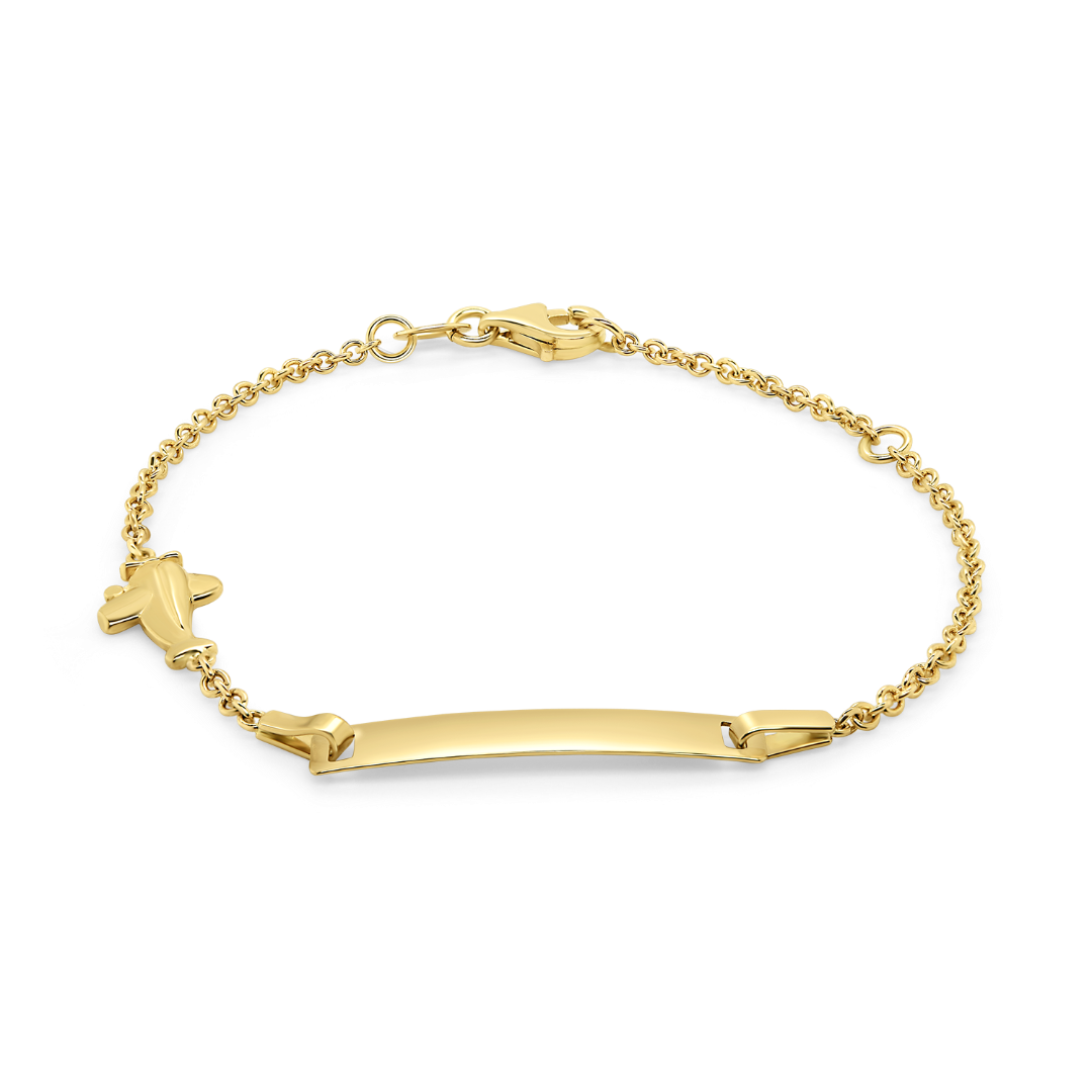 Brățară din aur galben de 14K, cu plăcuță și element în formă de avion.