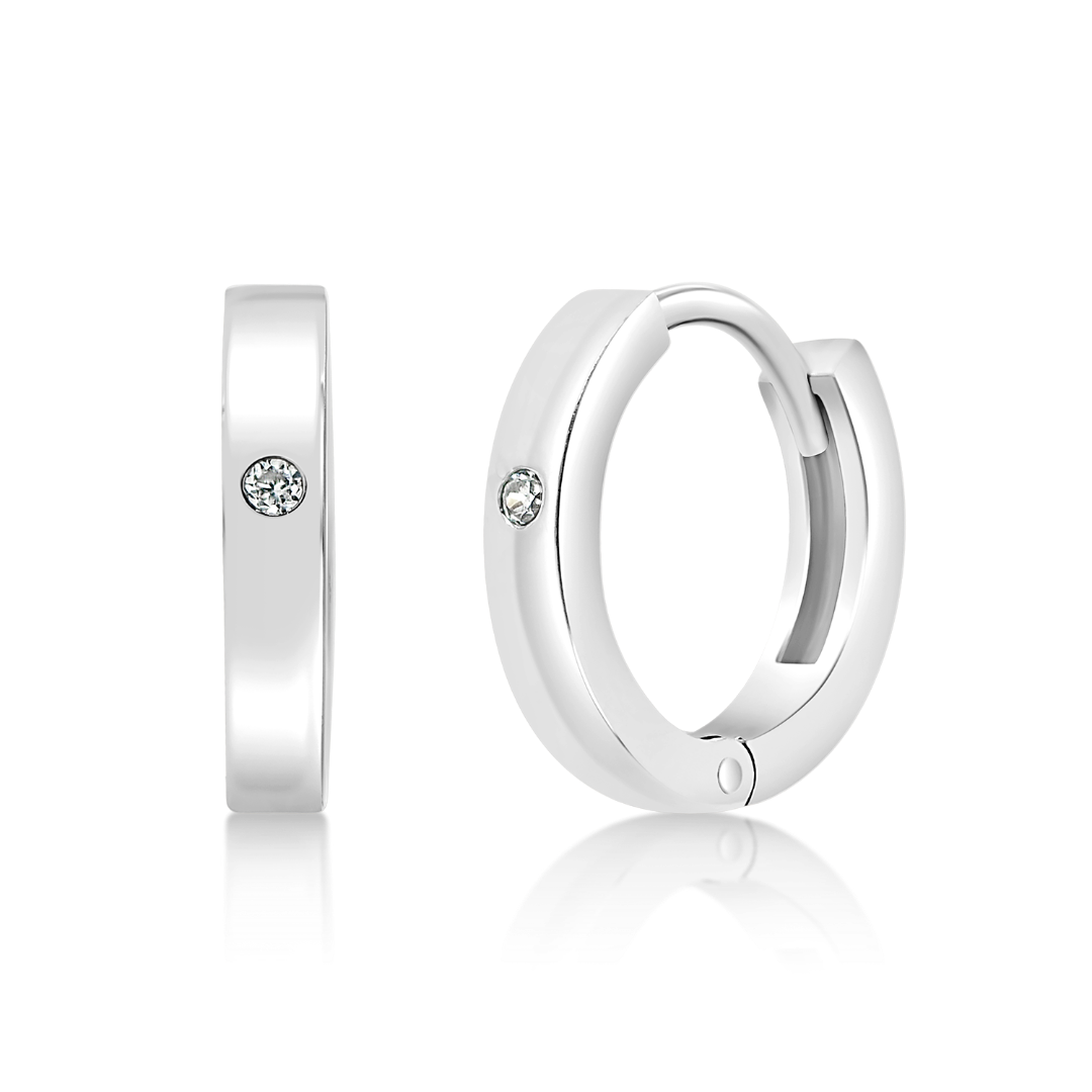Cercei tortițe pentru copii din aur alb de 14K cu pietre cubic zirconia.