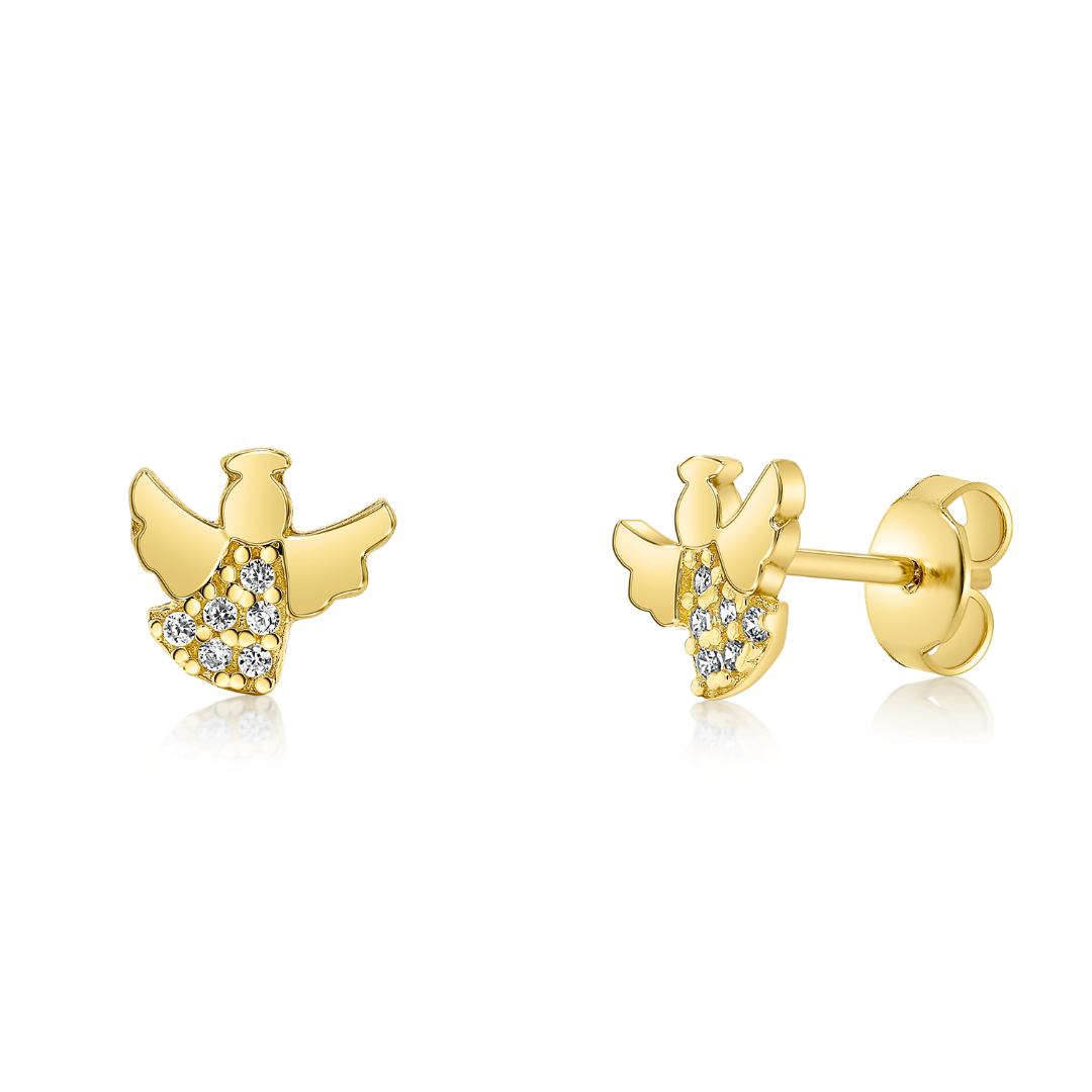 Cercei din aur galben de 14K cu pietre cubic zirconia.