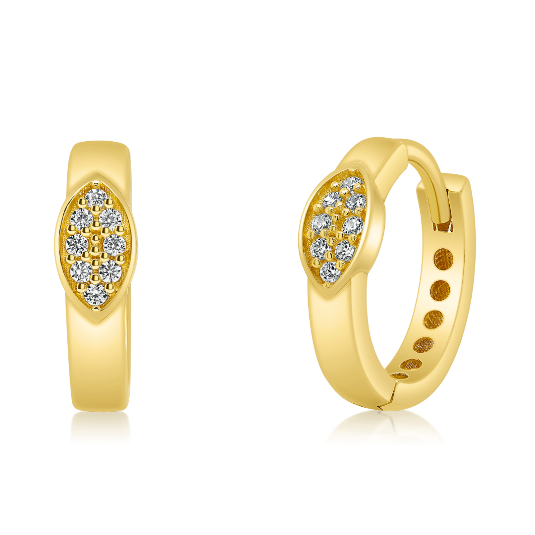 Cercei tortițe din aur galben de 14K, cu pietre Cubic Zirconia albe.