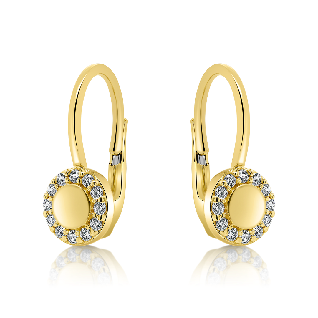 Cercei din aur galben de 14K cu pietre Cubic Zirconia.