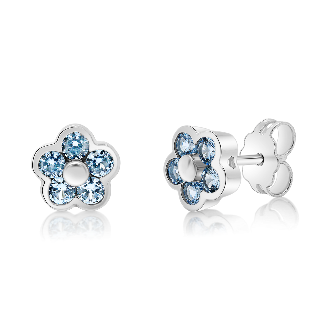 Cercei din aur alb de 14K cu pietre albastre
