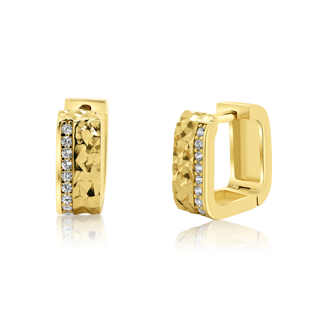 Cercei fațetați din aur galben de 14K cu pietre Cubic Zirconia albe.