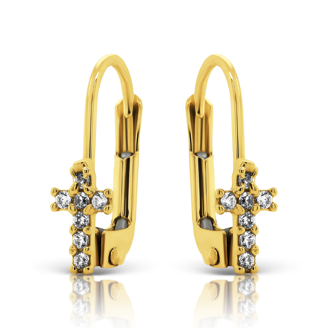 Cercei din aur de 14K, cu elemente tip cruce și pietre Cubic Zirconia albe