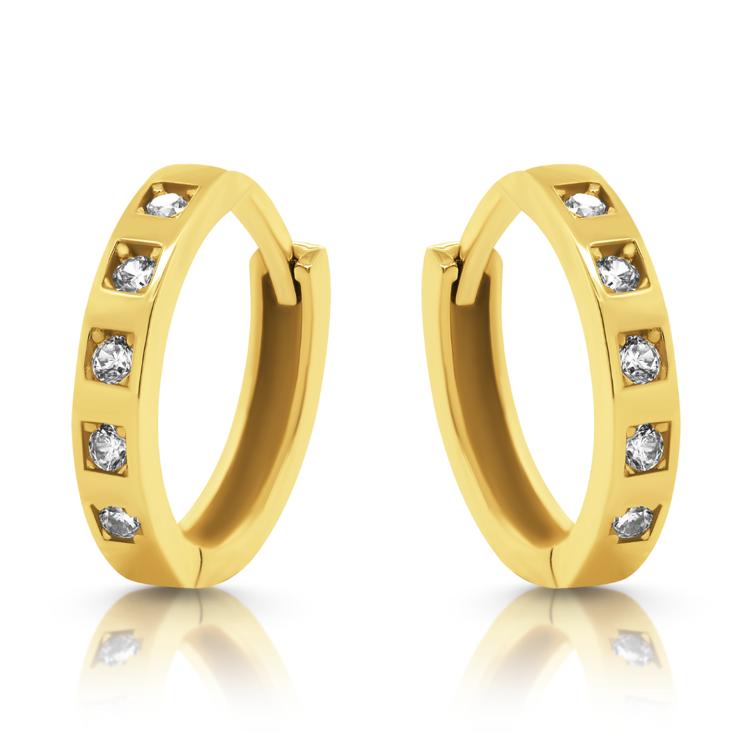 Cercei din aur galben de 14K cu pietre Cubic Zirconia albe.
