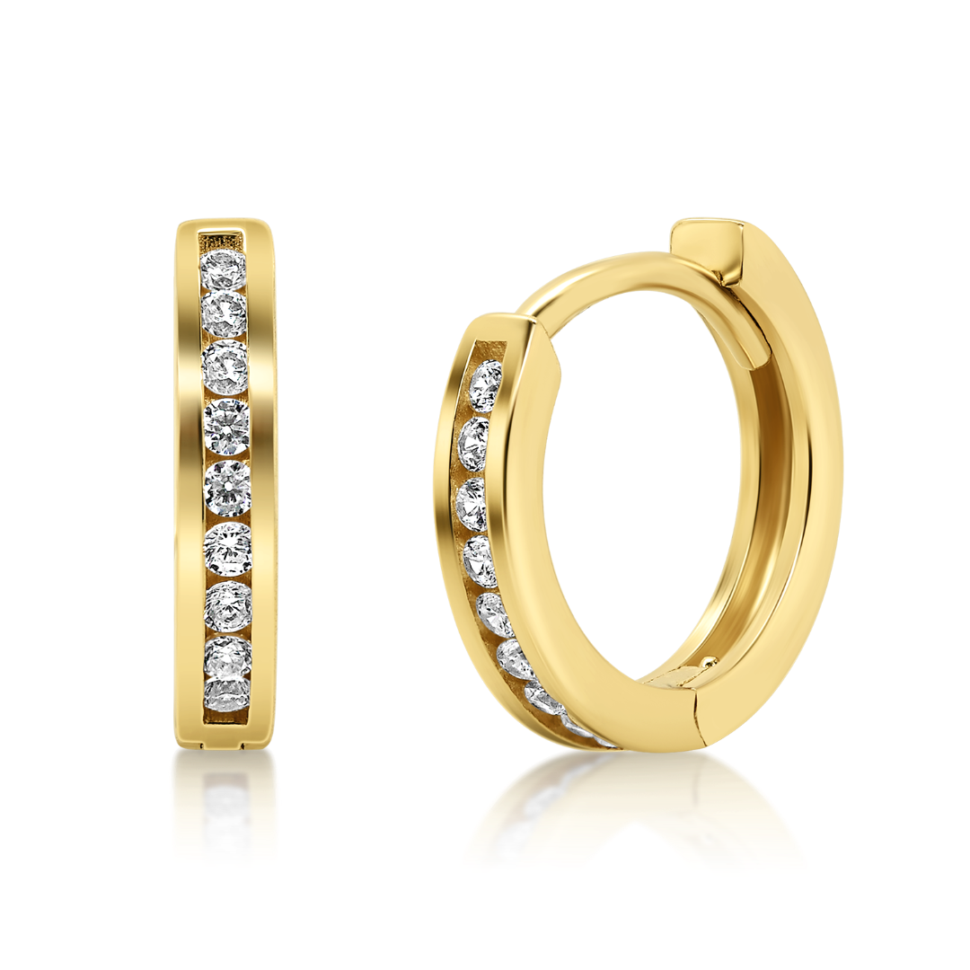 Cercei pentru copii din aur galben de 14K cu pietre cubic zirconia.