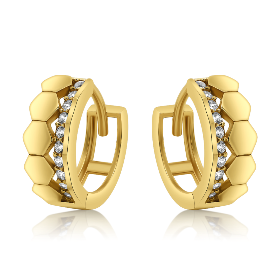 Cercei din aur galben de 14K cu pietre Cubic Zirconia albe.