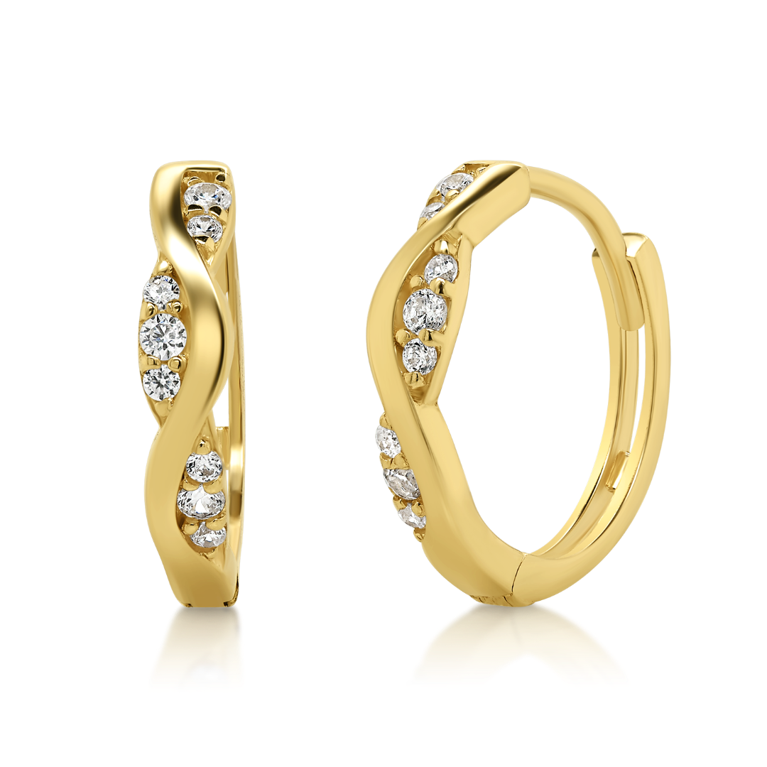 Cercei pentru copii din aur galben de 14K cu pietre cubic zirconia.