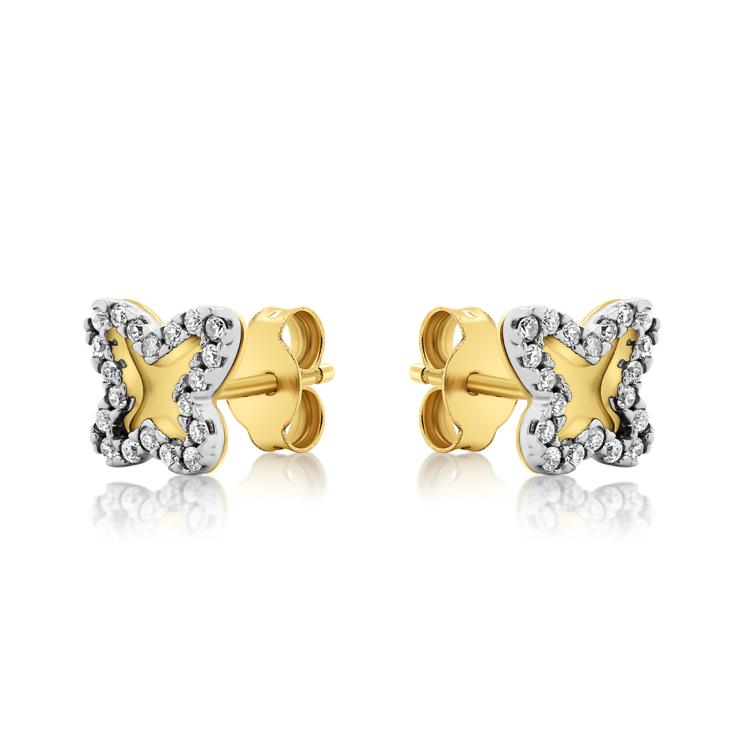 Cercei din aur galben de 14K tip fluture cu pietre Cubic Zirconia albe.