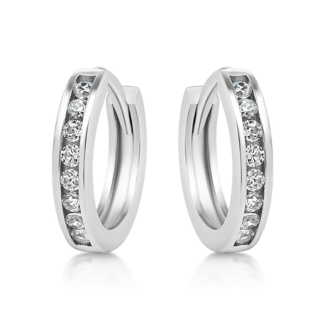 Cercei din aur alb de 14K cu pietre cubic zirconia.
