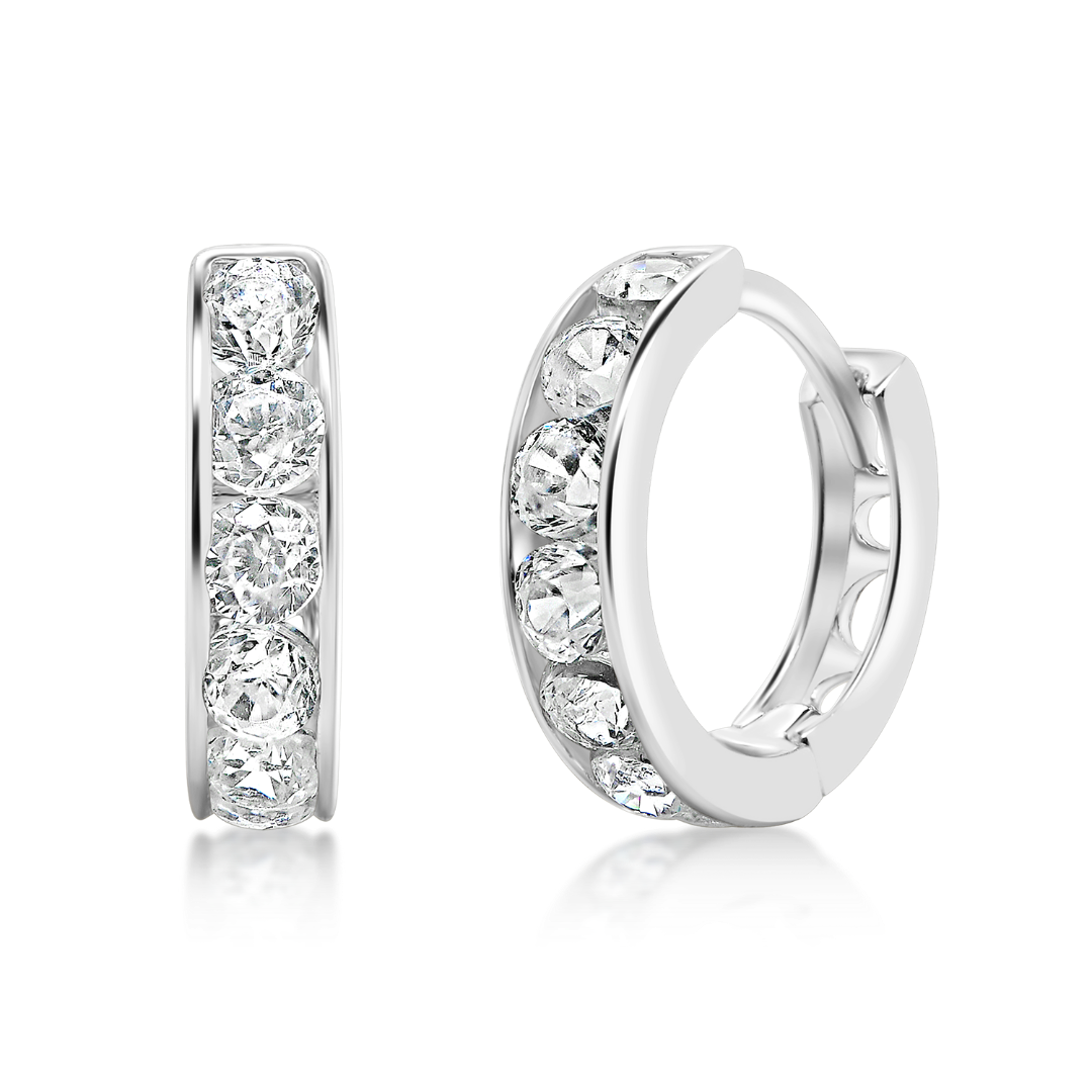 Cercei pentru copii din aur alb de 14K cu pietre Cubic Zirconia.