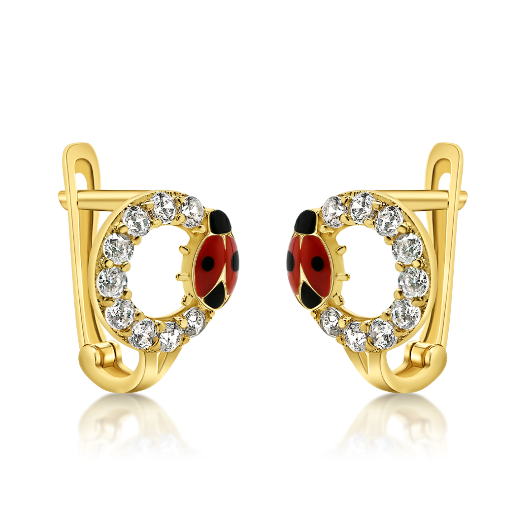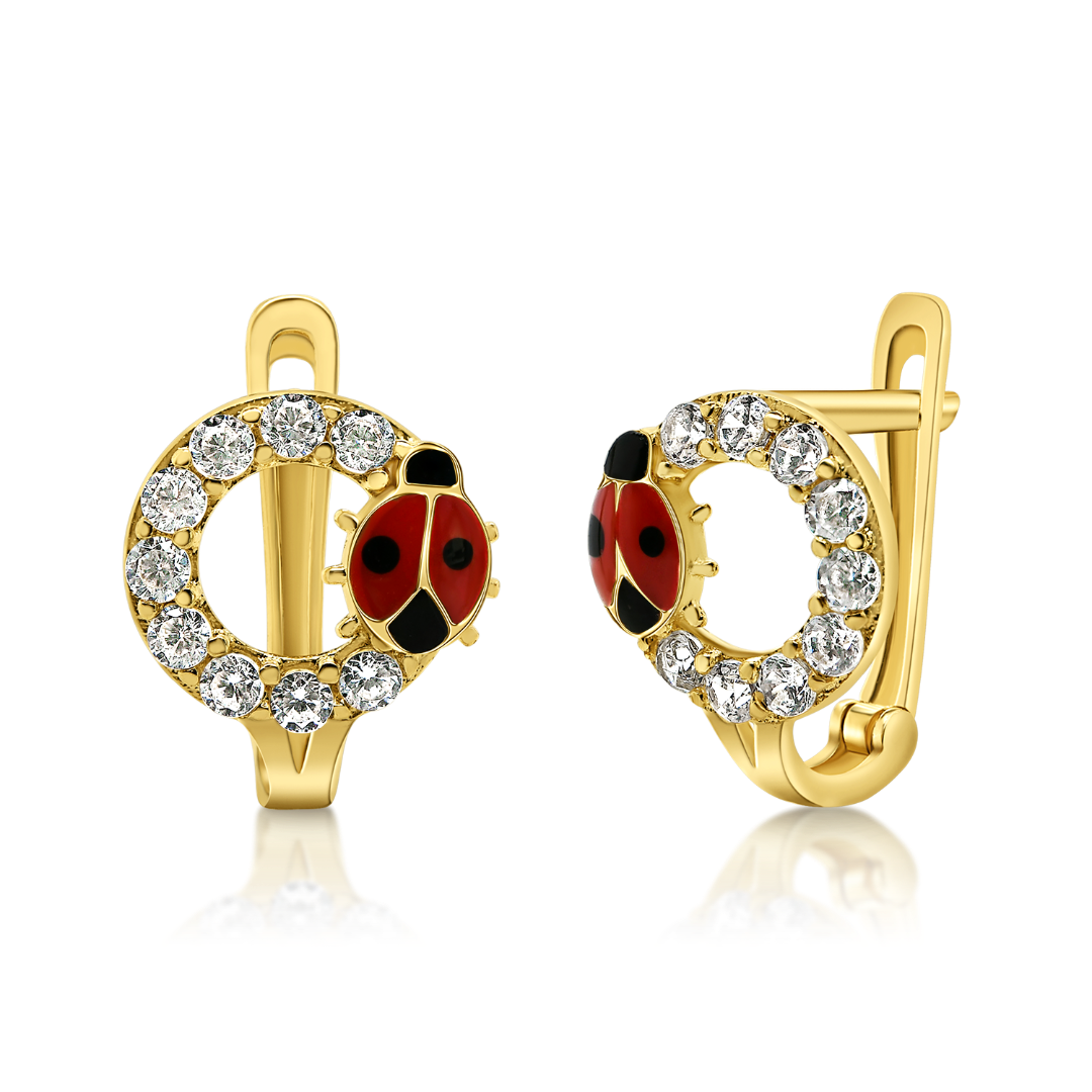 Cercei pentru copii din aur galben de 14K, cu pietre Cubic Zirconia și Email.