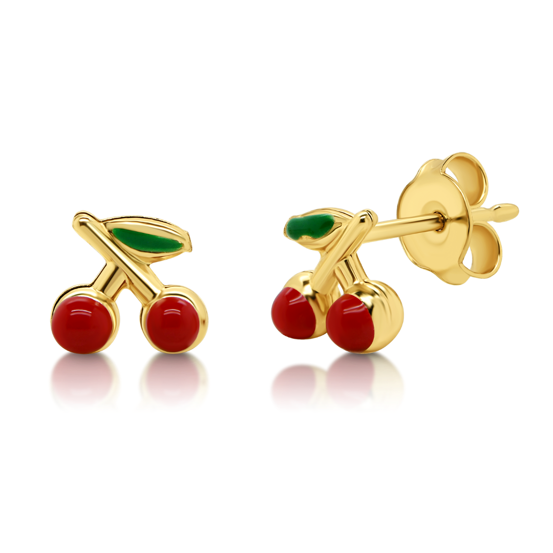 Cercei cireșe din aur galben de 14K cu Email colorat.