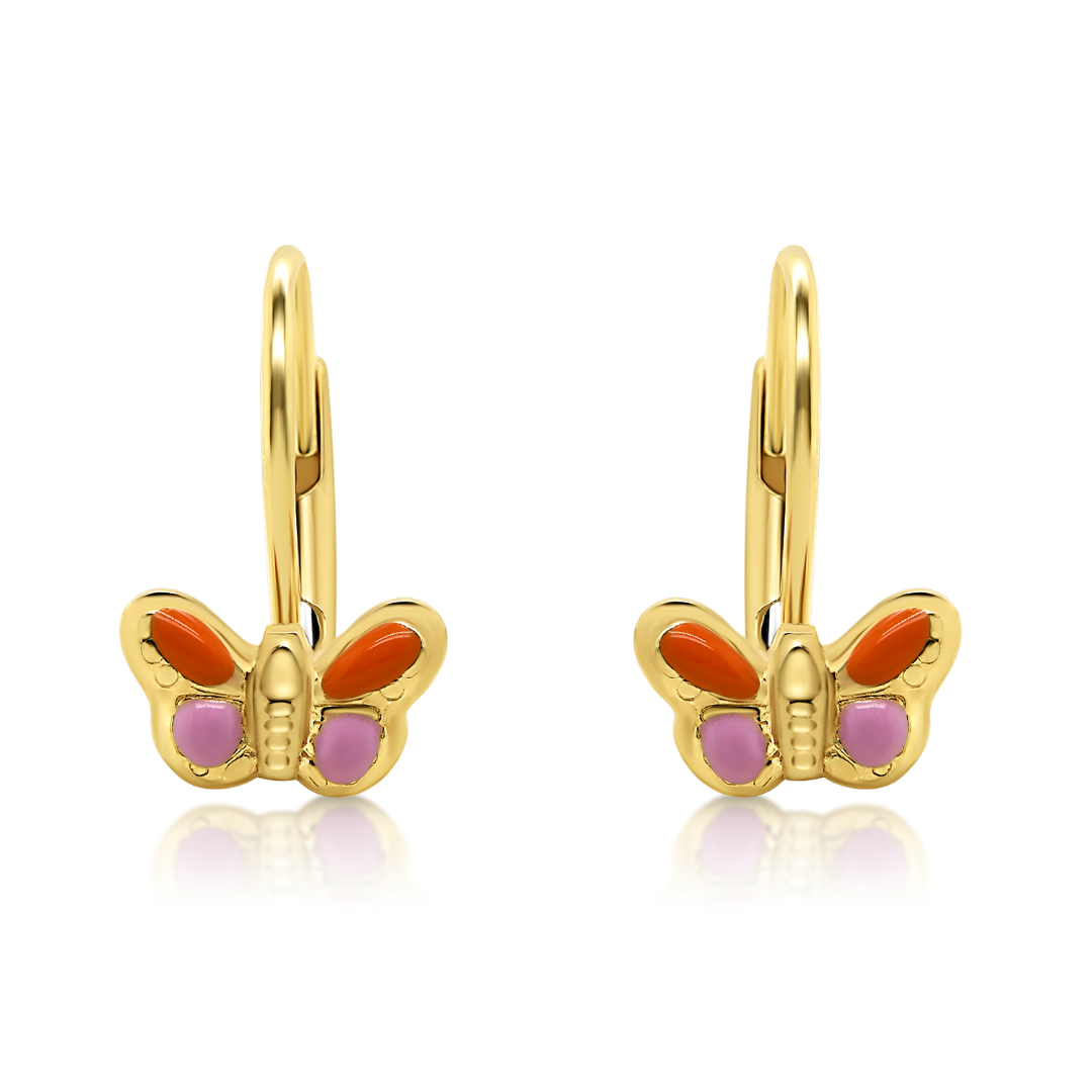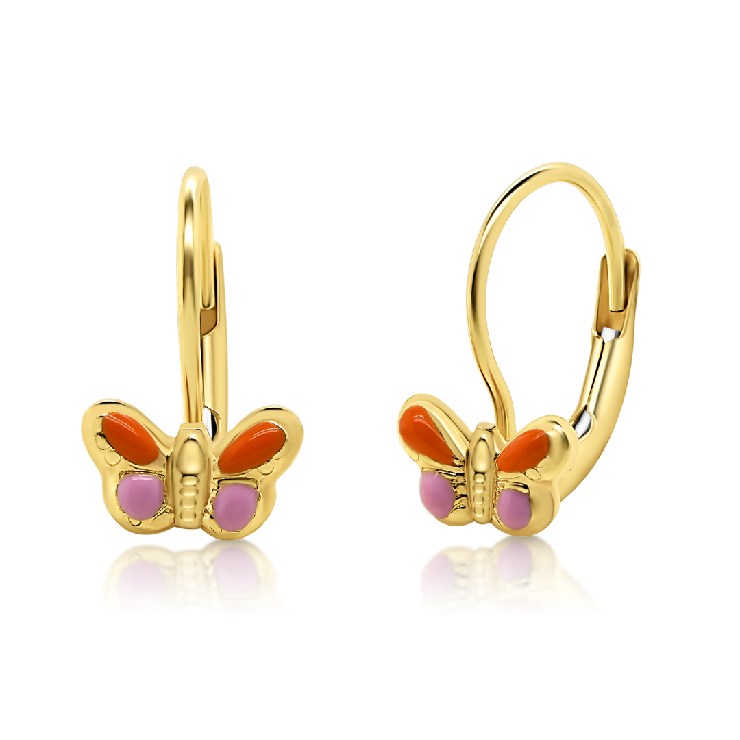 Cercei pentru copii din aur galben de 14K, cu Email colorat.