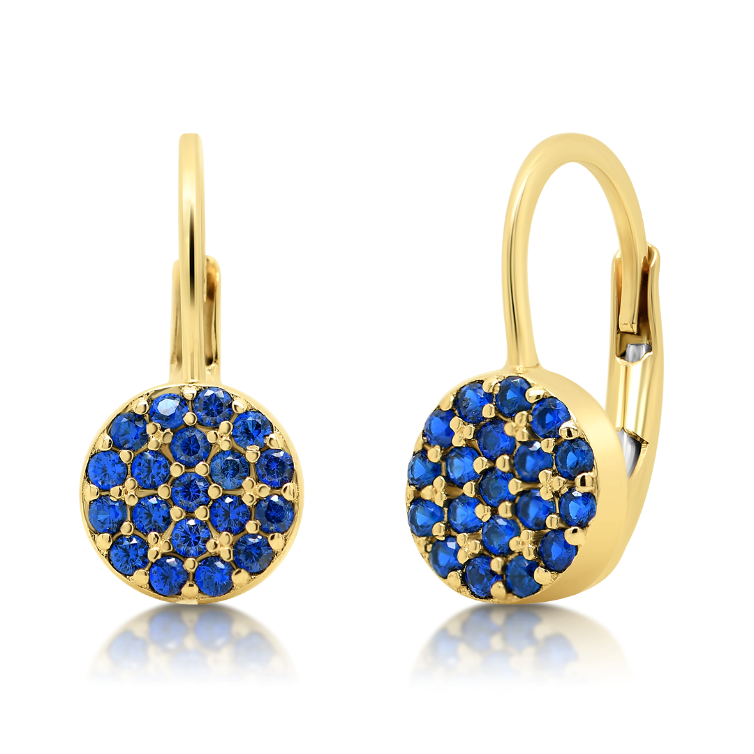 Cercei din aur galben de 14K cu pietre Cubic Zirconia albastre.