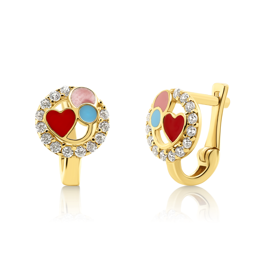 Cercei pentru copii din aur galben de 14K cu Email și cubic zirconia.