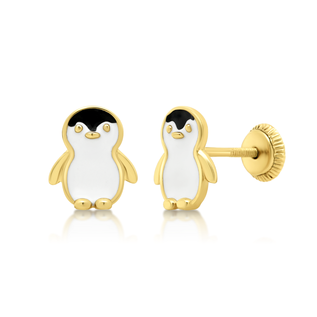 Cercei pentru copii din aur galben de 14K, cu protecție și Email colorat.