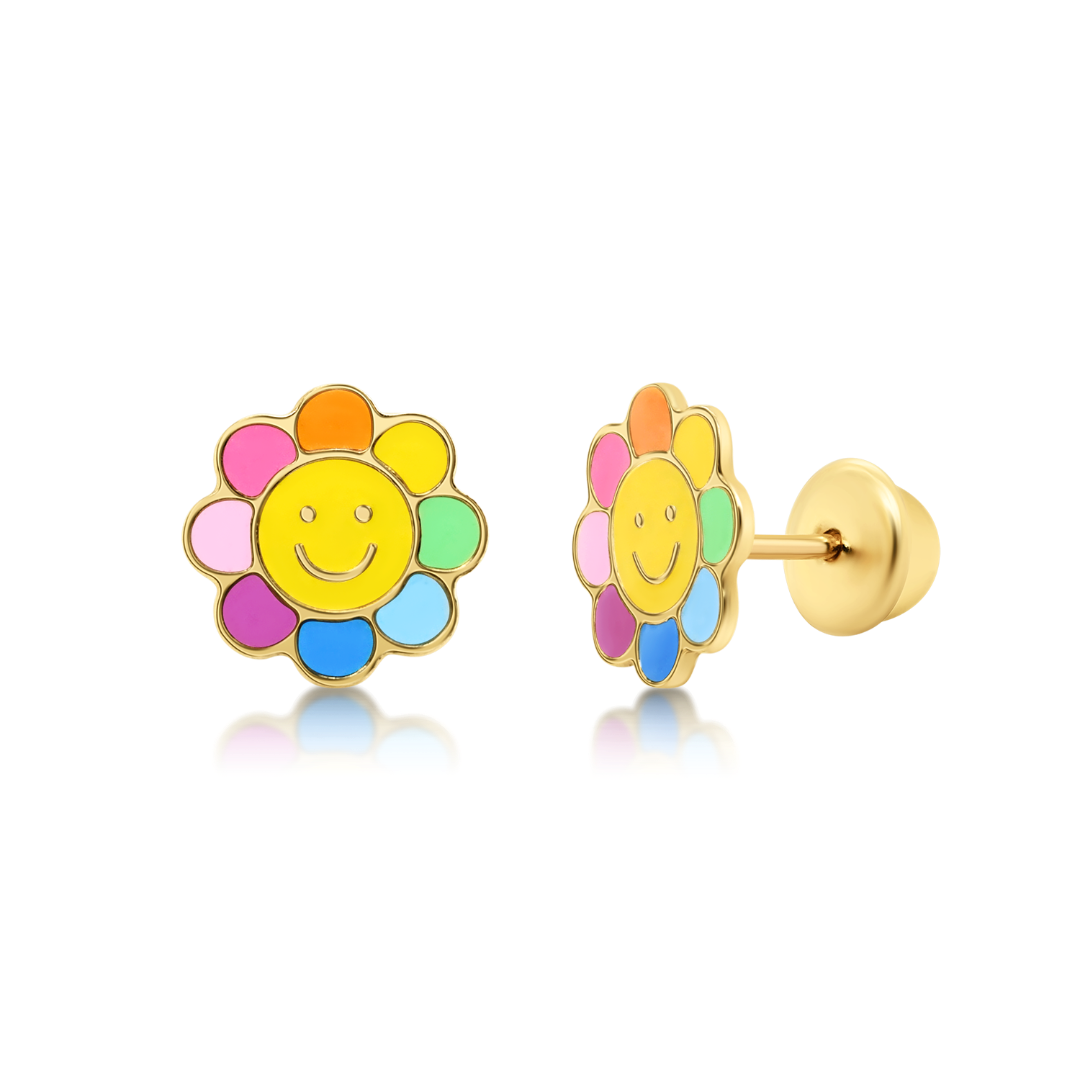 Cercei cu protecție pentru copii din aur galben de 14K și Email colorat.