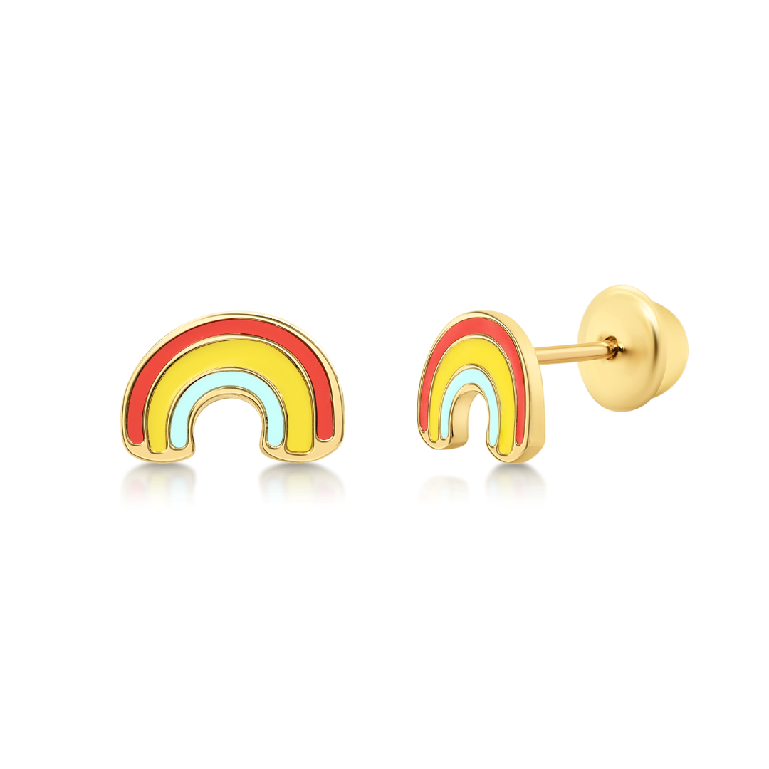 Cercei curcubeu din aur galben de 14K cu Email colorat.