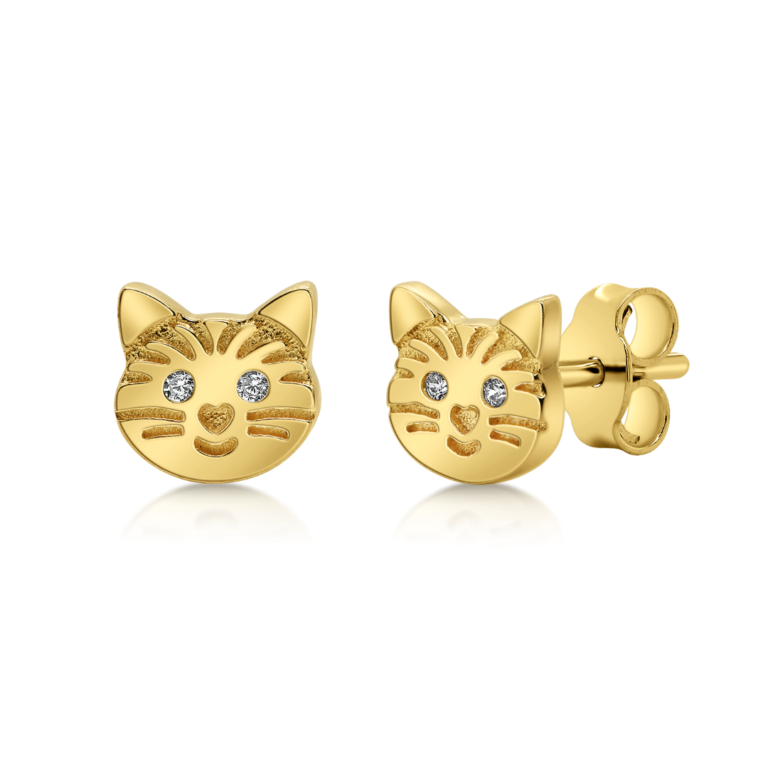 Cercei din aur galben de 14K cu pietre Cubic Zirconia albe.